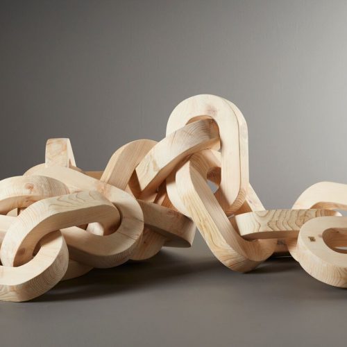 With my woodcarving personal work, this year I have been experimenting with stripping back to simpler, tactile shapes and subverting materials, encouraging interaction and playing with scale. An example is the huge 3 meter “Memory Chain”, made from one single length of pine, currently exhibited at The New Craftsmen in London and is also part of their collaboration with 1st Dibs.