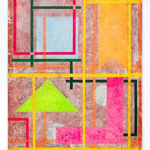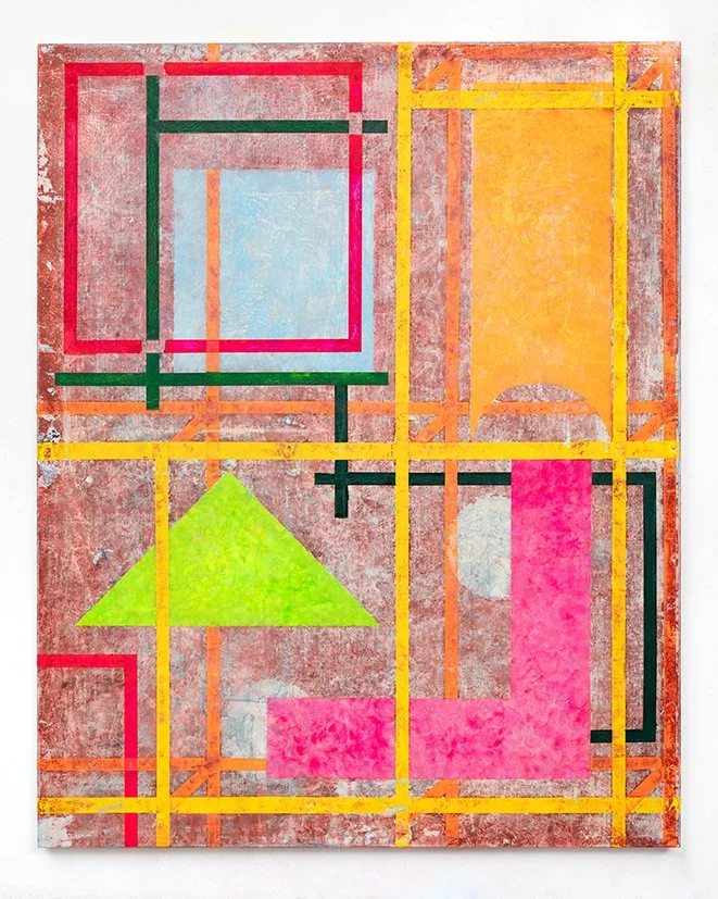 Anna Liber Lewis’ paintings are organised around a self-reinforcing visual system, whereby a set of formal parameters informs how the image is constructed. The paintings are made through a process of building and erasing, using the language of print and drawing. She works across many canvases, responding and reacting to the other in a generative process, much like how music is processed. “In the studio I lam free to listen to my nervous system, like an anechoic chamber, and move the sense datum which remains trapped in my body.”
