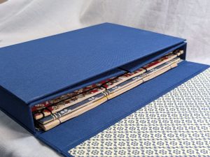 The final stage of the course centres on the chitsu, a traditional wraparound case designed to protect and store sets of books. Participants will prepare boards, linings and coverings, then assemble the case step by step. Your marbled papers may be used again here if you wish to create a fully unified set.